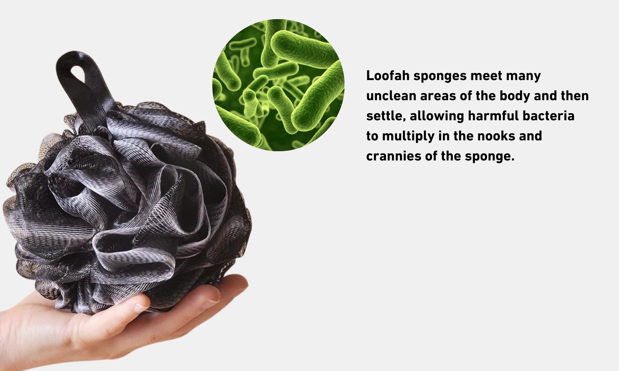 Loofah sponges and all other types of sponges and body brushes are the perfect environment for harmful bacteria. Our scrubbers are a hygienic and eco-friendly replacement and a more effective method than washing your body with your hands. Their non-porous structure means they are easy to clean, while the bristles we have designed gently exfoliate and deep clean the skin.